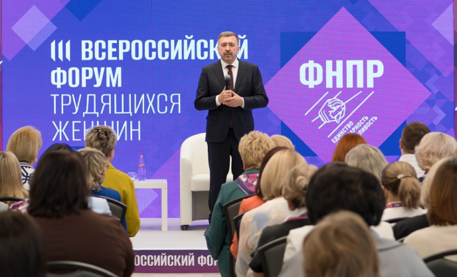 Председатель Федерации Независимых Профсоюзов России Сергей Черногаев принял участие в III Всероссийском форуме трудящихся женщин, где состоялось обсуждение актуальных вопросов гендерного равенства и социальной защиты женщин. В рамках форума была организована панельная дискуссия, посвященная законодательным инициативам, направленным на расширение возможностей женщин в профессиональной сфере.