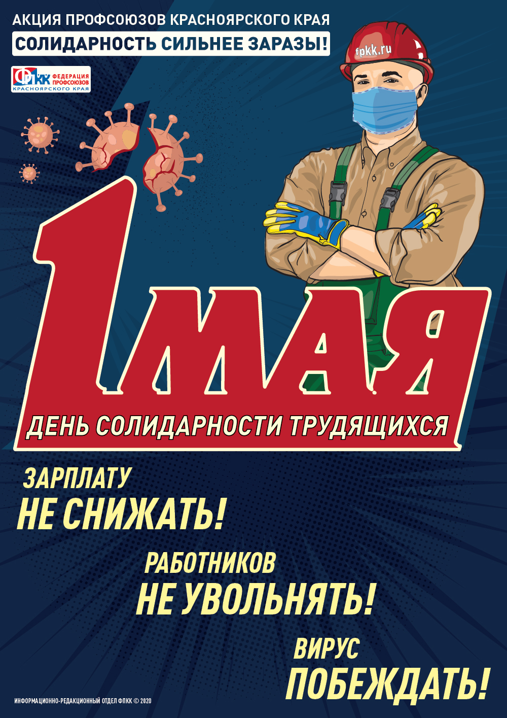 В помощь профсоюзным активистам в преддверии 1 Мая информационно-редакционный отдел Федерации профсоюзов Красноярского края разработал агитационные материалы. Распечатывайте и распространяйте в коллективах, размещайте на профсоюзных сайтах и стендах, делайте репост в соцсетях и мессенджерах.
