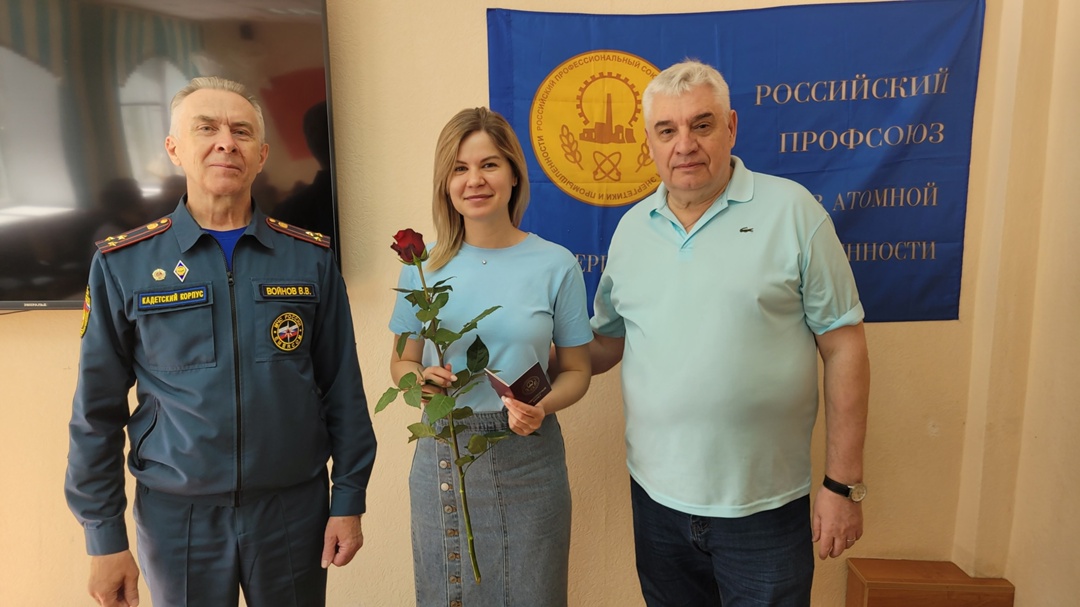 – Мы рады приветствовать вас в рядах нашей профсоюзной организации И это символично, что торжественное мероприятие проходит в канун Дня России Поздравляю всех с наступающим праздником и присоединением к профсоюзной организации работников атомной энергетики и промышленности. А молодых сотрудников приглашаем принять активное участие в работе молодёжной комиссии ТПО, – отметил Александр Перепелкин, вручая коллективу профсоюзные билеты.