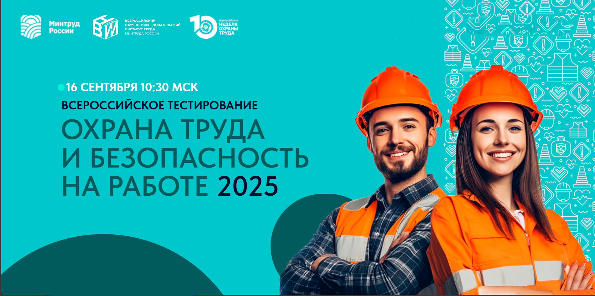 В рамках X Всероссийской недели охраны труда 16.09.2025 в 10:30 (время московское) состоится Всероссийское онлайн-тестирование по охране труда «Охрана труда и безопасность на работе 2025».
