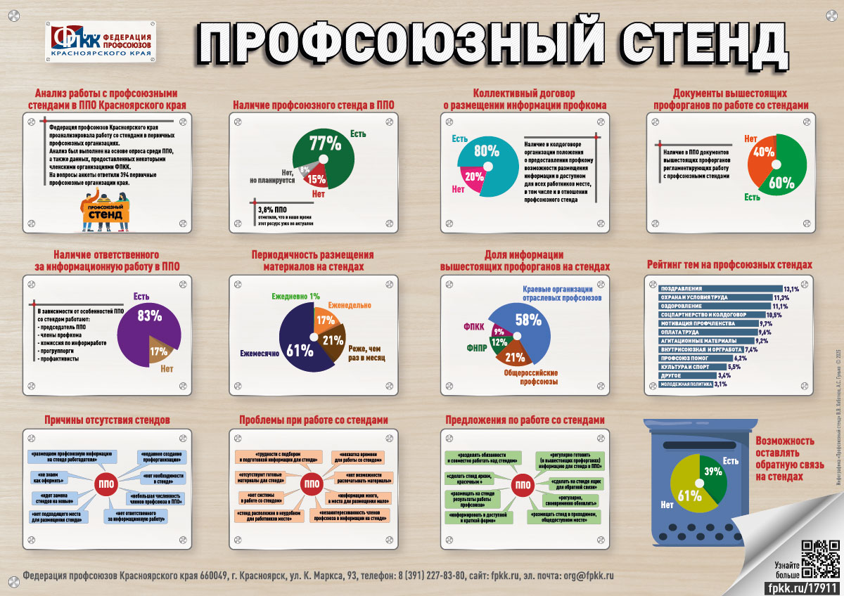 Федерация профсоюзов Красноярского края проанализировала работу со стендами в первичных профсоюзных организациях.