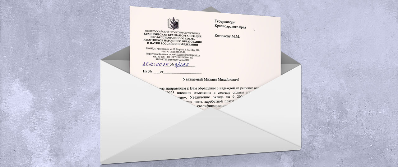 Красноярская краевая организация Общероссийского Профсоюза образования направила обращения к губернатору Михаилу Котюкову и председателю Законодательного Собрания Алексею Додатко с предложением об увеличении базового оклада педагогических работников до уровня минимального размера оплаты труда.