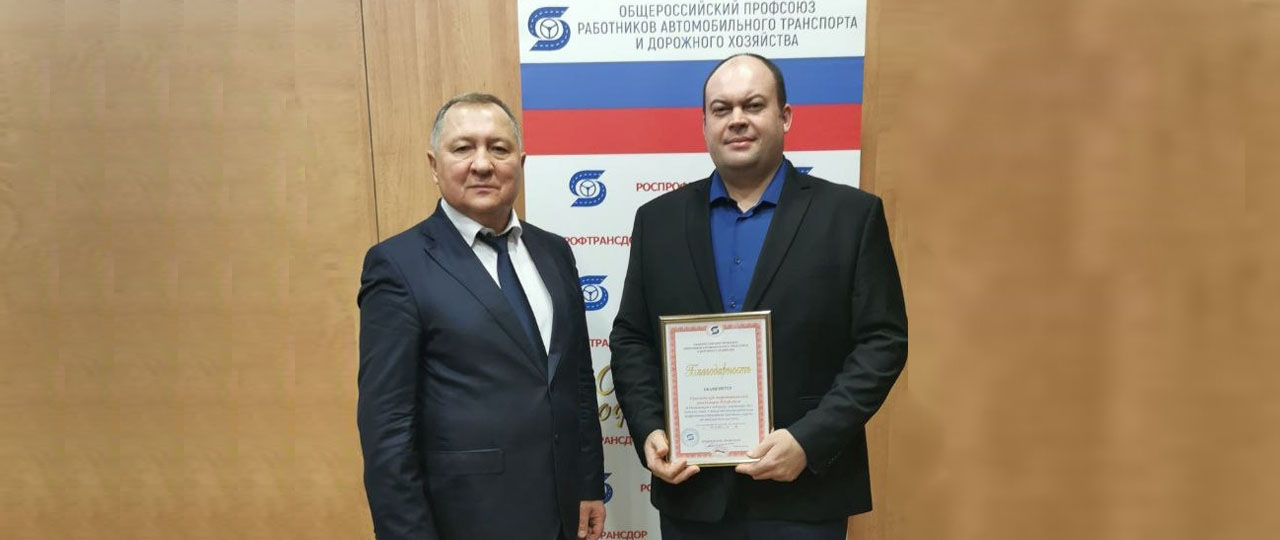 В Москве состоялось заседание ЦК Общероссийского профсоюза работников автомобильного транспорта и дорожного хозяйства. На нем председатель Профсоюза Владимир Ломакин вручил благодарственное письмо Красноярской краевой организации Профсоюза работников автомобильного транспорта и дорожного хозяйства за большой вклад в поддержку участников СВО, членов их семей, а также обеспечение работников прифронтовых территорий средствами защиты от террористических атак.