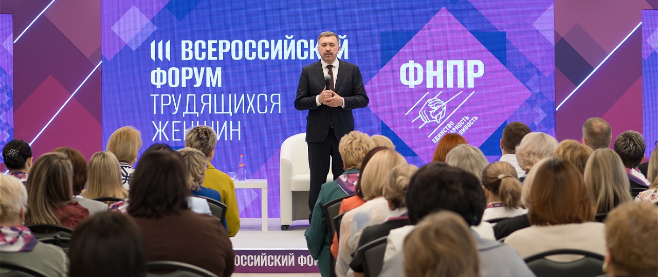 Председатель Федерации Независимых Профсоюзов России Сергей Черногаев принял участие в III Всероссийском форуме трудящихся женщин, где состоялось обсуждение актуальных вопросов гендерного равенства и социальной защиты женщин. В рамках форума была организована панельная дискуссия, посвященная законодательным инициативам, направленным на расширение возможностей женщин в профессиональной сфере.