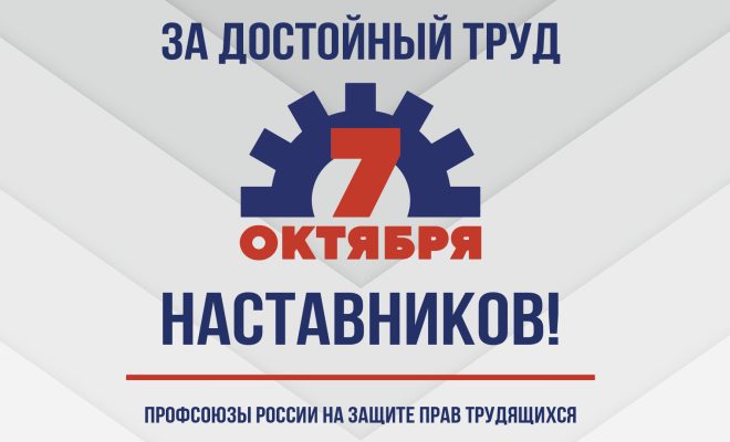 Ежегодно 7 октября профсоюзы проводят Всероссийскую акцию в рамках Всемирного дня действий «За достойный труд!». Традиционно мероприятия акции направлены на решение актуальных вопросов трудовых отношений, популяризацию и продвижение ценностей социального партнерства. В 2025 году акция проходит под девизом «За достойный труд наставников!».